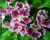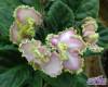 Крупные нежные сиренево-розовые цветы с густой зеленой волнистой каймой с крапчатой фуксиевой окантовкой. Светлые вол...