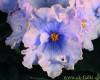 Очень крупные (6-7 см) волнистые кремовые звёзды с обильным голубым фэнтези и широкой нежно-сиреневой каймой. По краю...