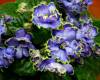 Крупные яркие сине-голубые звёзды с темно-пурпурно-фиолетовыми краями и тонкой светлой бахромкой образуют букет, напо...